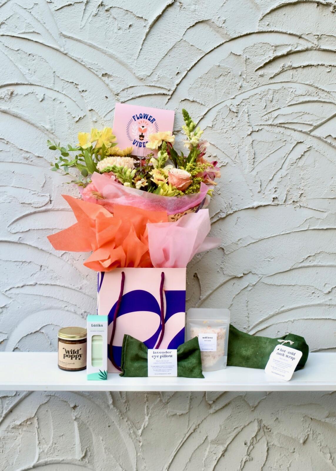 “Celebrate in style with our Isidora’s Choice classic wrap, two Seattle chocolates, a handmade clutch from Peru, a birthday greeting card, a Poppy & Pout lip balm, and a tiny llama keychain (handmade in Peru). Wrapped in Isidora’s signature gift style for a wow effect.