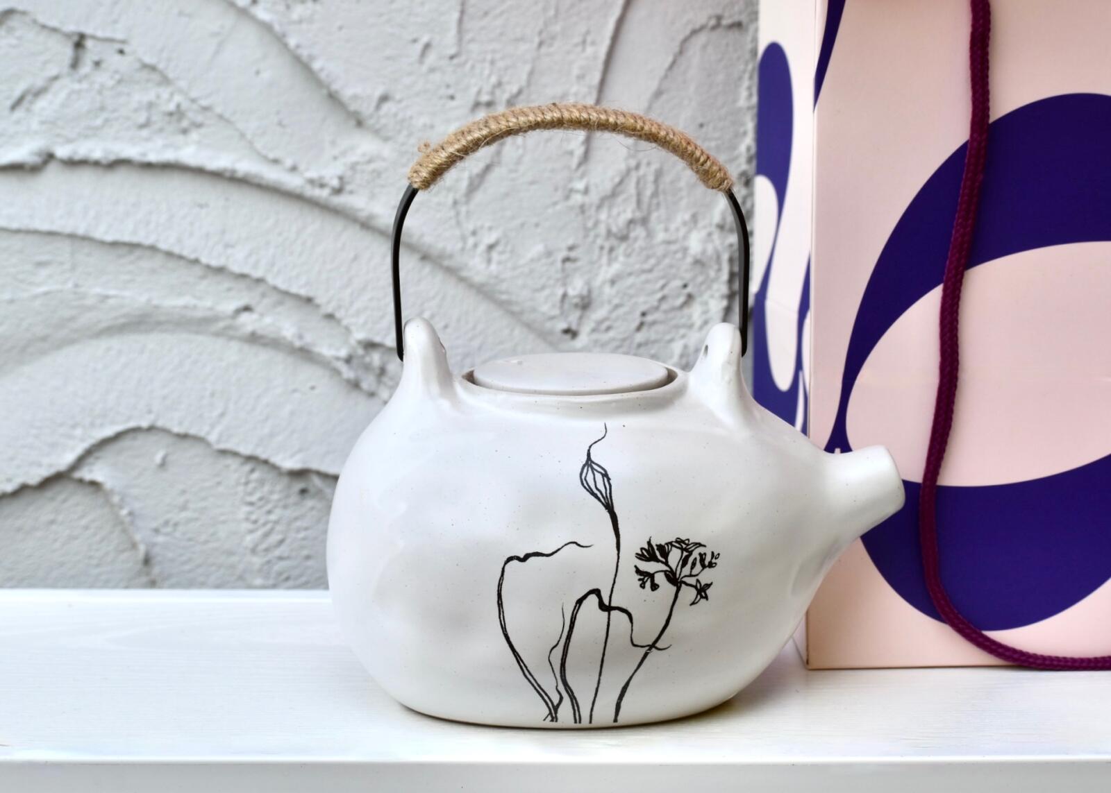 “Cozy and elegant: Isidora’s Choice classic wrap, a special teapot, a box of Tea With Tae high-end teas, and a modern mug. Wrapped in Isidora’s signature gift style for a wow effect..